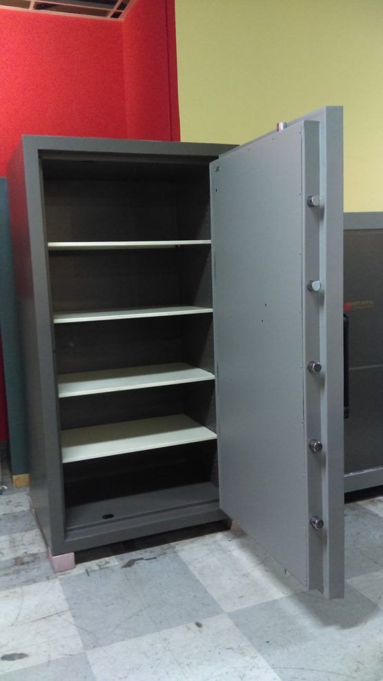 Description: High Security Composite Construction 2 Hour Fire Rated Safe Equipped w/ Dual Security Combination Dial & High Security Electronic Locking System. Extreme Cubic Storage Capacity Capability.